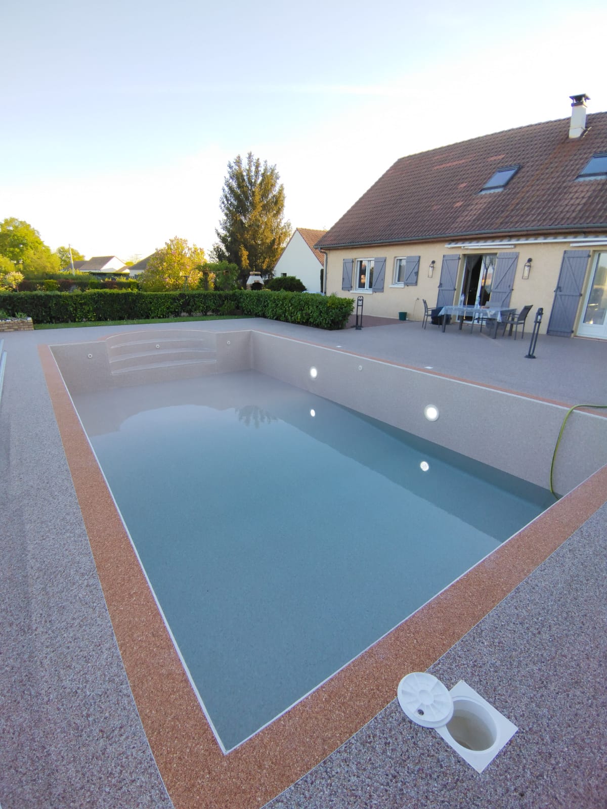 Nous réalisons vos projets de construction piscine traditionnelle béton armé à Belleville et dans tout le Beaujolais : Villefranche sur Saône, Belleville, Arnas…